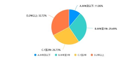 调查结果显示,32.72%的信息员任职时长为“2年以上”,29.49%为“半年至1年”,26.73%为“1至2年”,11.06%为“半年及以下”。整体任职时长结构较为均衡,且长期任职信息员占比最高,反映出信息员团队稳定性较强,具备丰富的工作经验。