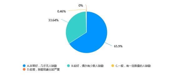 第2题 在你所参与的课程中,学生的出勤情况如何?
