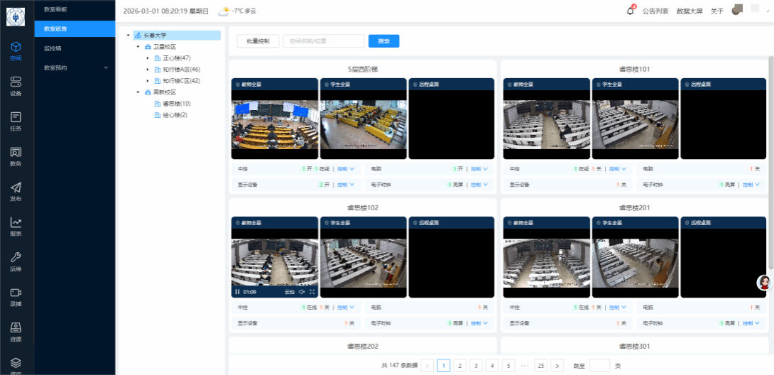 为优化教学环境、提升智慧教学支撑能力,寒假期间长春大学统筹推进卫星校区、高新校区教室设施升级改造工程。目前,所有设备均已完成安装调试并投入使用,以全新面貌为日常教学保驾护航,助力学校教育教学高质量发展。