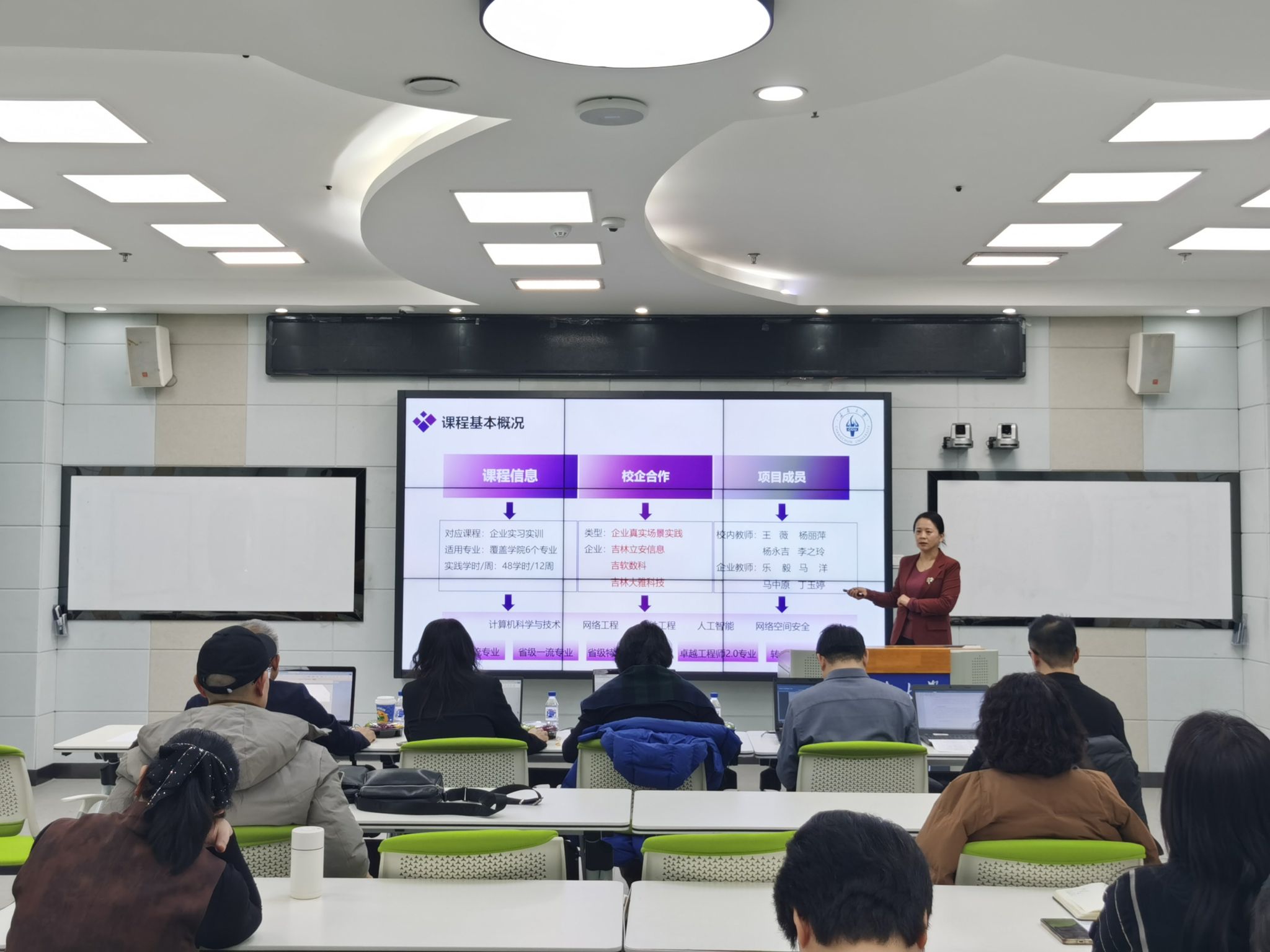 会上,张晓颖首先解读了本次一流实践教学改革项目申报的核心要求、评审标准及培育方向,强调项目需紧密对接产业真实需求,突出“校企联动、产学结合”的鲜明特色。随后项目负责人依次进行汇报,通过PPT演示从项目背景、建设目标、实施路径、预期成果及创新点等方面展开详细阐述。评审过程中,专家们围绕项目的可行性、育人实效及可持续发展性进行精准提问与专业点评,为项目进一步完善提供了宝贵建议。